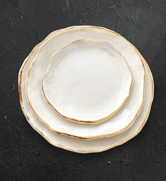 Plato postre irregular con oro