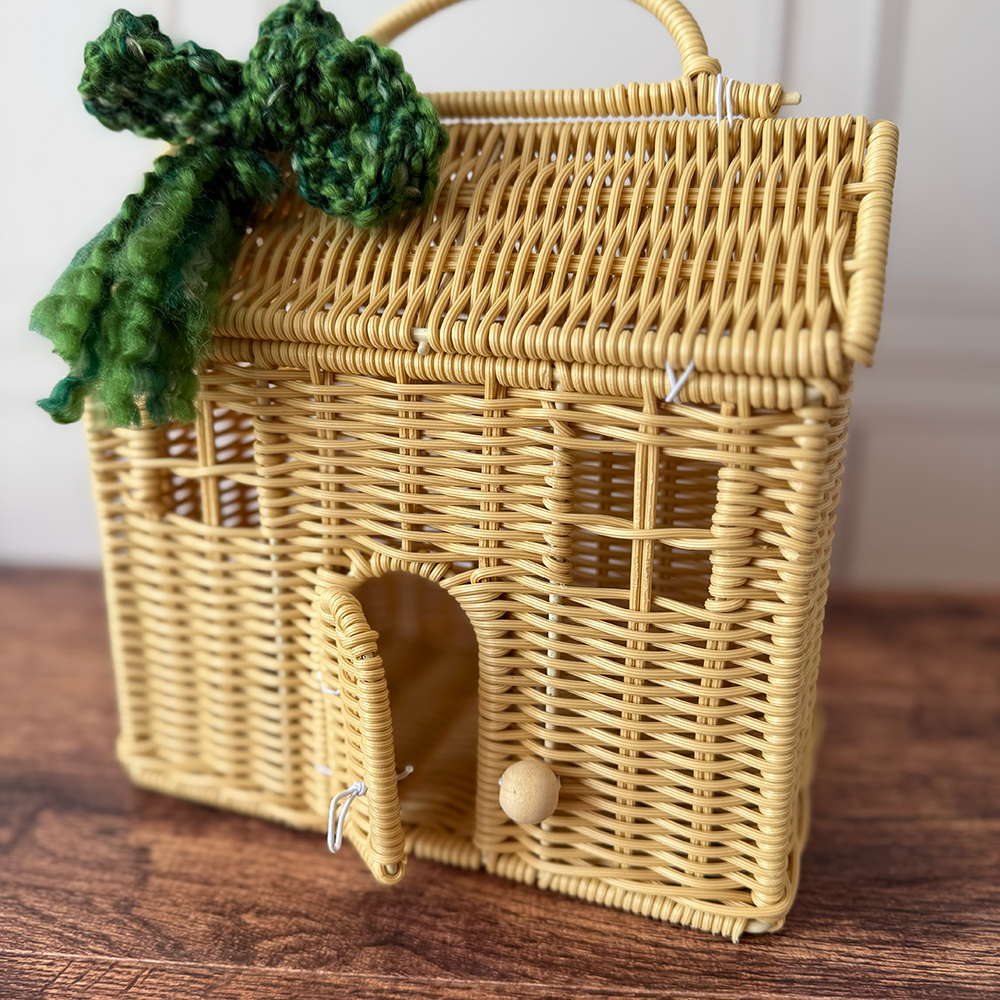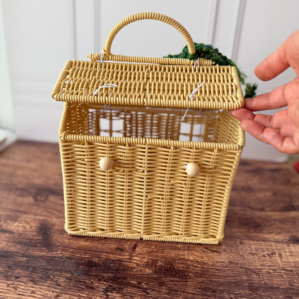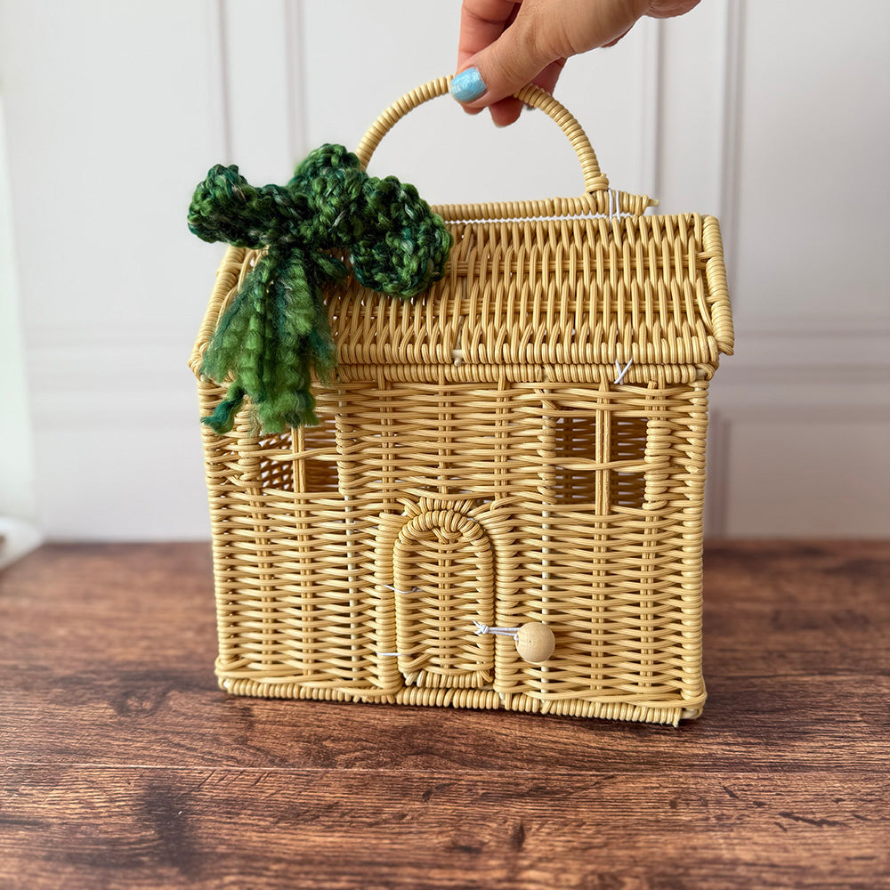 Hermosa bolsa de almacenamiento tejida en ratán.