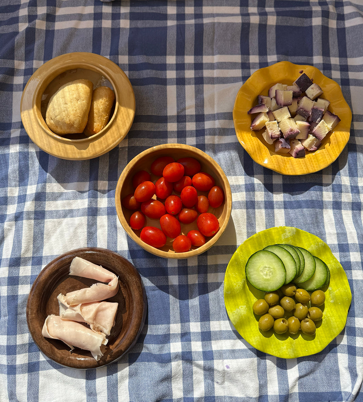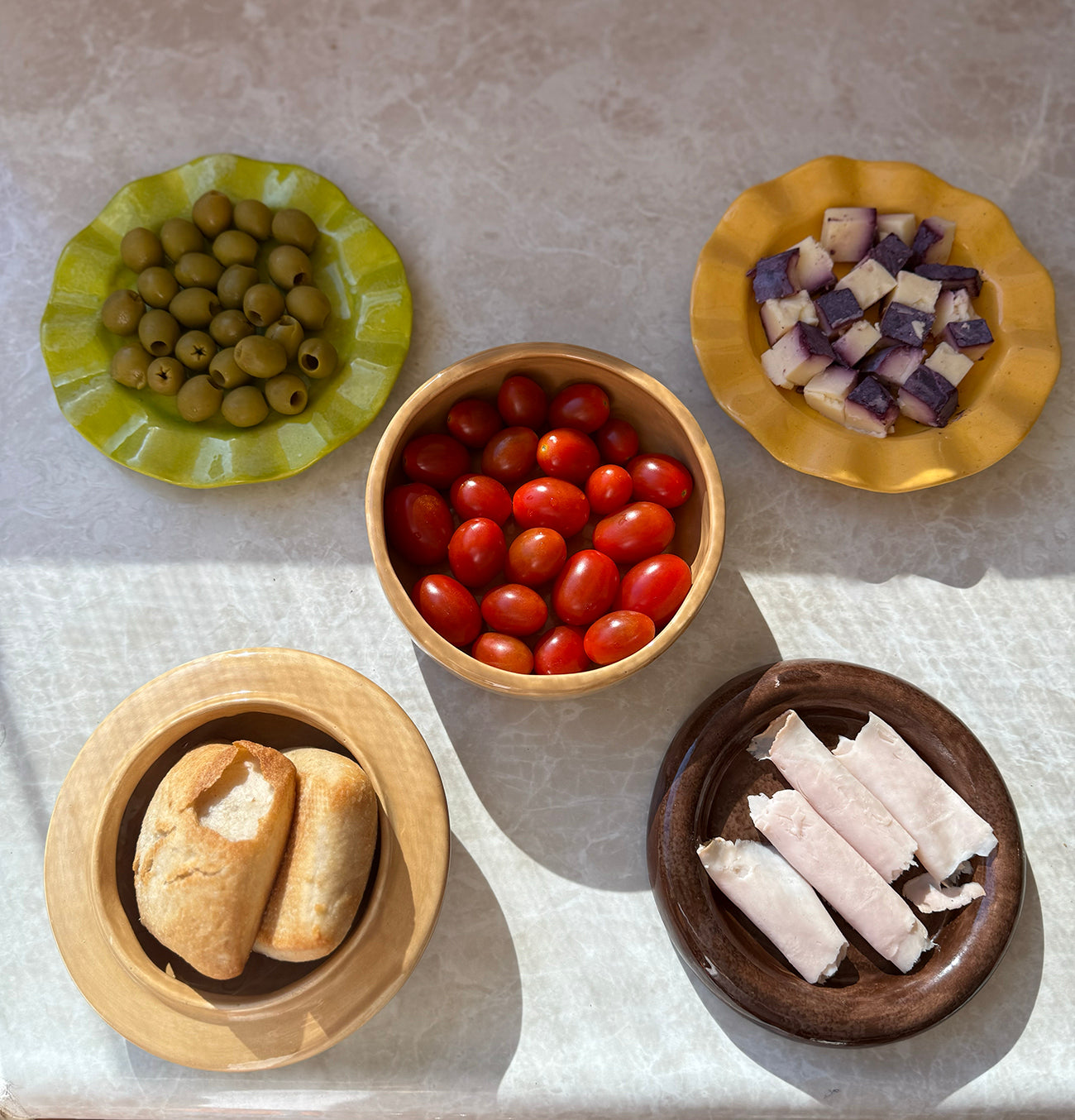 Vajilla creativa de cerámica apilable de 5 piezas. Cada una corresponde a los ingredientes icónicos de la hamburguesa: panes, carne, queso, lechuga.